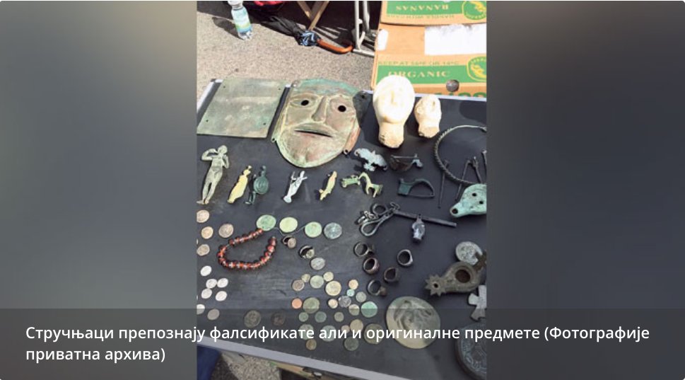 Један велики колекционар с којим смо разговарали, слаже се да је нешто фалш роба, али штошта је – оригинал: „У пола збирке бих се опкладио да су ове винчанске фигуре, мермерне главе, као и шлем лажни. Али Бахус је аутентичан, стаклене боце, фибуле и лампе такође, новчићи. А и ова бронзана плоча – рекао бих да је аутентична, и заиста вредна.”