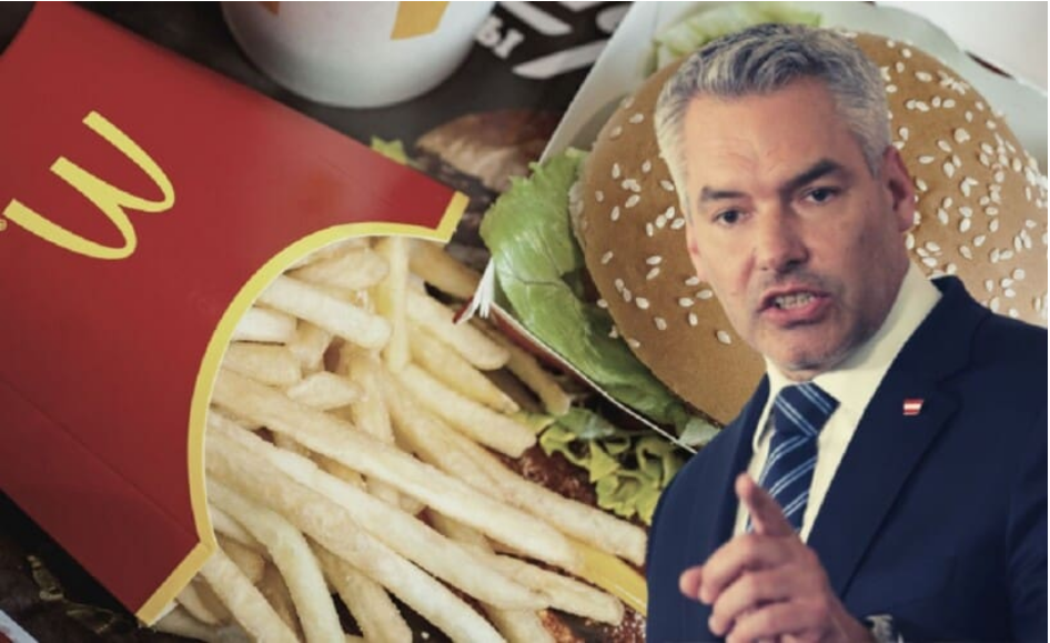 Аустријски канцелар Карл Нехамер нашао се на удару жестоких критика након што се појавио видео на којем се види како родитељи са ниским примањима треба да хране своју децу Мекдоналдсовим пљескавицама.