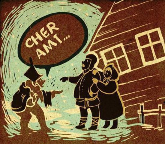 Ту причу сам чуо још у детињству. Зато ми се учини врло занимљивим кад, послѣ много година, код историчарке Наталије Нарочницке набасах на слично прѣдање поводом руског израза сродног значења шаромыга, шаромыжник, шаромыжка (џабалебарош, преварант, лупеж). Овдѣ су главни јунаци Наполеонови војници који у позну јесен 1812. године, промрзли и гладни, на челу са својим величанственим војсковођом, одступивши из Москве, у нереду бегају ка руској граници: они се руским мужицима такође обраћају с испруженом руком и рѣчима „Cher Ami!“ („Драги пријатељу!“).