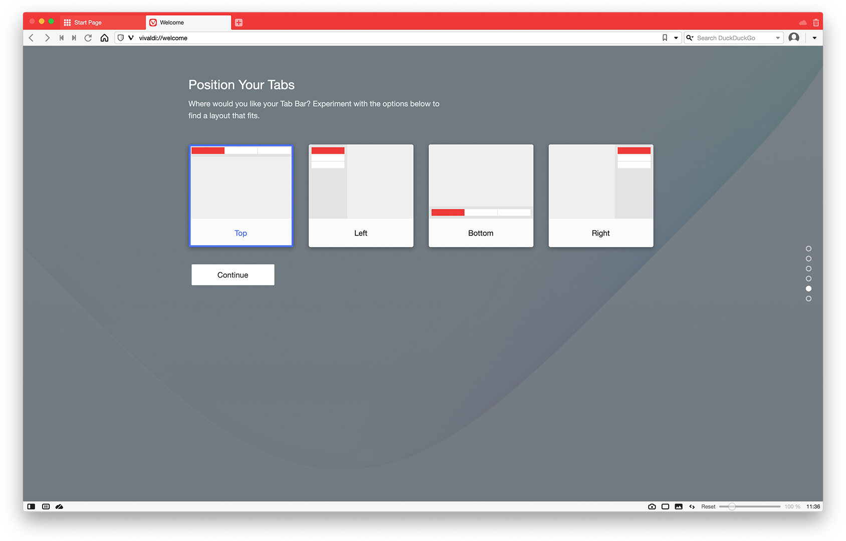 И кад смо већ код прегледања, код Хрома имате, и то као једину могућност, да је трака страница на врху прозора. И то је било потпуно у реду, јер за друге опције нисам ни знао. А сад? Вивалди вам допушта да изаберете место траке са страницама: горе, доле, лево, десно.