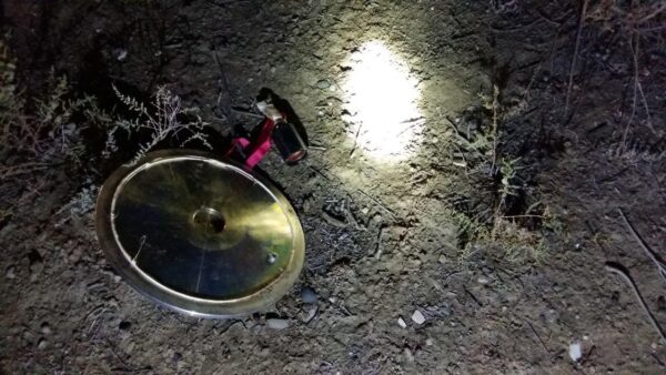 Овде се види пар десетина комада касетне мунициjе, расутих по земљи на веома блиској удаљености, у мраку. Нема никакве слике са
