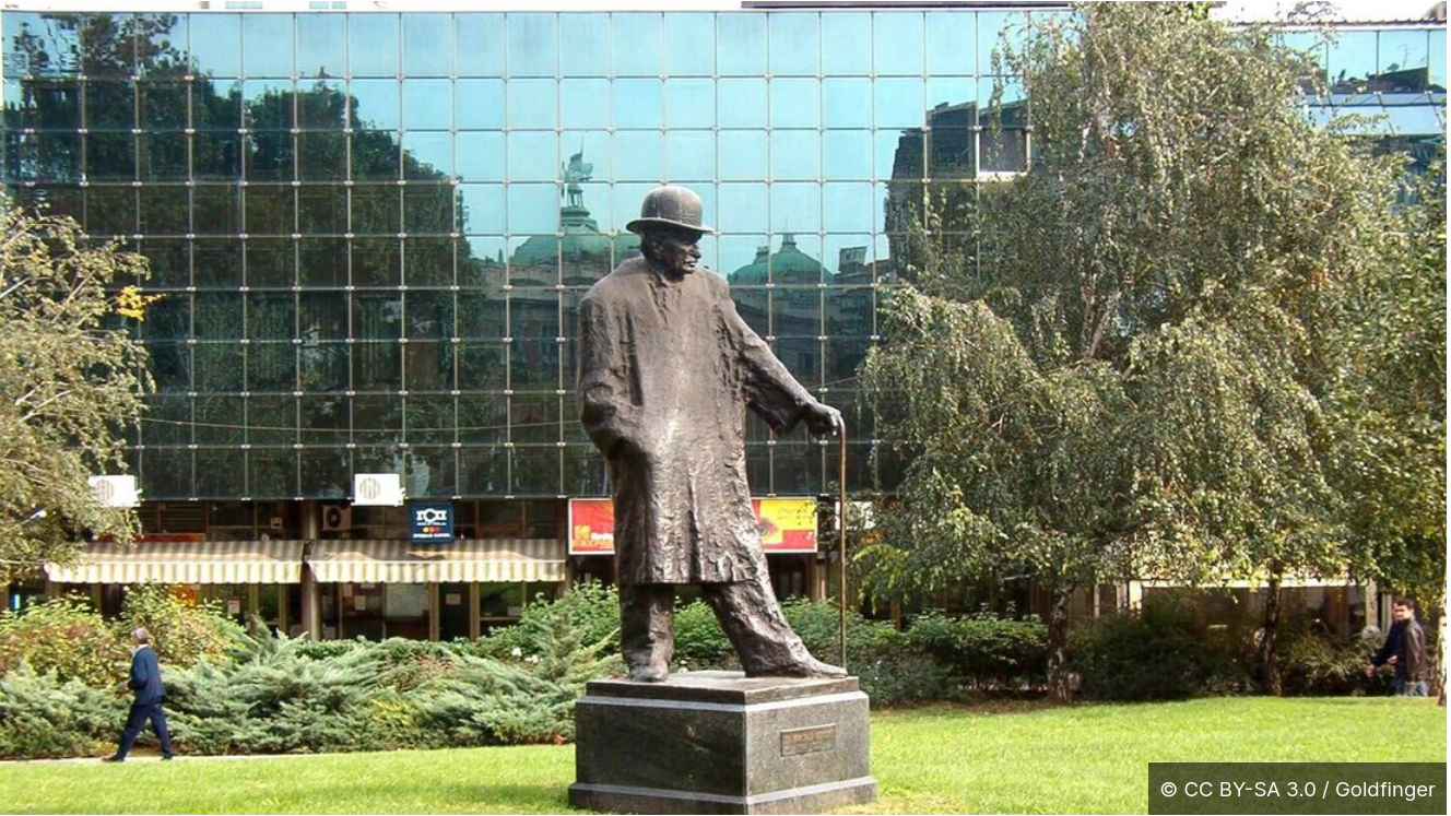 Истог дана, након сусрета с Господиновом, враћајући се у свој привремени софијски стан, у Булевару патријарха Евтимија, на броју 14, угледам најпре познат (ауто)портрет. То је Бранислав Нушић?! Да, то је ресторан који се зове „Нушич“ и у ком се продаје српски роштиљ, штоно овде кажу, србска скара.