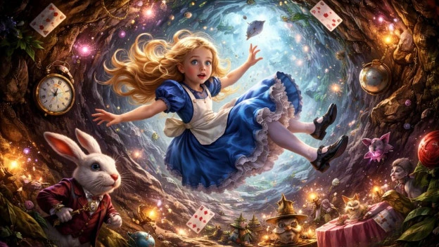 Знате причу, радознала девојчица пада низ зечју рупу у свет животиња које говоре, лудих чајанки и бесмислених загонетки.