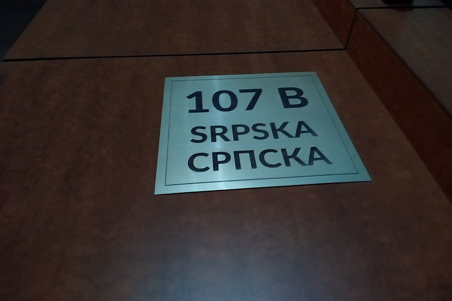 У Сарајеву су и даље само латиничне и непредратно зелене, док је ова са наше фотографије очигледно од приватног предузимача. Осим што је српско писмо на другом мјесту, није баш најјасније да ли се мисли на Б или В, али код оних којима је латиница на првом мјесту сигурно нема дилеме.