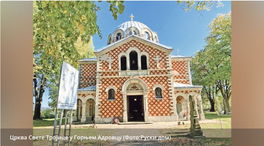 У протеклих неколико година смо на све начине покушавали да скренемо пажњу на значај обнове цркве Свете Тројице у Горњем Адровцу, која је у веома лошем стању. Питање је померено са мртве тачке тек када је председник Србије Александар Вучић 8. децембра 2021. лично обећао да ће се позабавити питањем обнове овог значајног како за Русију, тако и за Србију храма. Овог лета су коначно почели радови на спасавању овог изузетног архитектонског споменика средствима Србије, Русије, Српске православне цркве и донацијама људи који нису остали равнодушни на судбину цркве. Координатор радова на обнови цркве са руске стране је Руски дом у Београду.[wc_spacing size=“40px“ class=““][/wc_spacing]