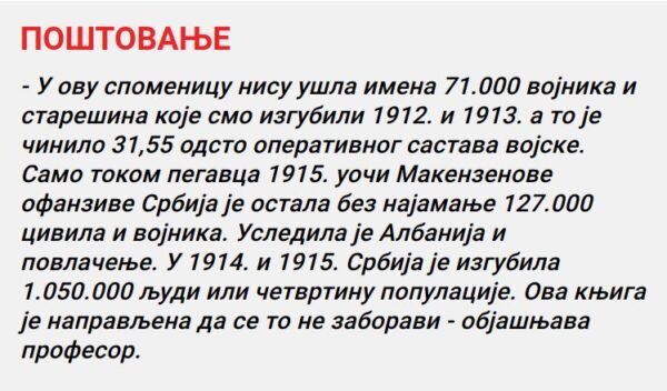 – Тек као „историчар у годинама“, видео сам књиге споменице мртвим јунацима руком писане у селима Србије. Ко то није видео, не може да разуме са којом љубави и пожртвовањем је српски војник бранио отаџбину.
