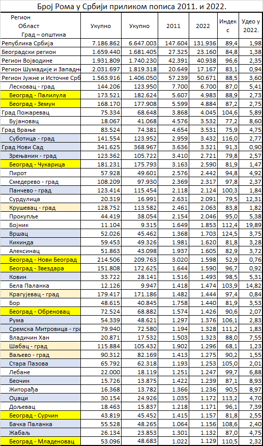 Да су Роми и Срби такорећи једно, доказује њихов готово идентичан пад у броју у Србији, између два пописа: Рома за 10,4% а Срба за 10,5%.