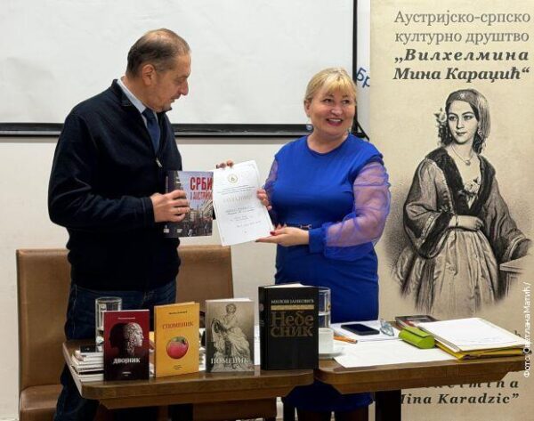 У Бечу обележено 120 година постојања Удружења књижевника Србије, 80 година излажења „Књижевних новина“ и четири деценије књижевног рада Милоша Јанковића. На позив Аустријско-српског културног друштва „Вилхелмина Мина Караџић“, у Бечу је 17. јануара 2026. године, обележено 120 година постојања Удружења књижевника Србије, 80 година излажења „Књижевних новина“ и 40 година књижевног рада Милоша Јанковића, […]